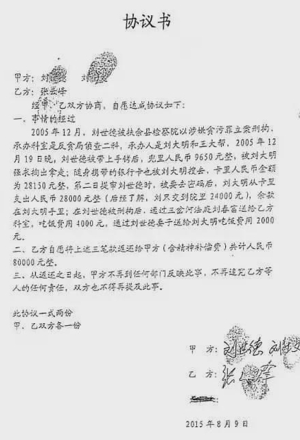 被刘世德称之为“明白费”的清单上,除了法官武宏伟以外,还涉及扶余市检察院的检察官。刘世德和刘士文提供的与扶余市检察院某检察官签署的“协议书”曾涉及对部分扣押而未上报的现金,以及两笔送给检察官的“明白费”。