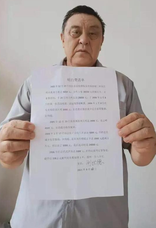 2021年8月12日,刘世德向大白新闻提供了当年向扶余县检察院、扶余县人民法院办案人员送去的“明白费”清单。清单上显示,扶余市人民法院法官武宏伟收取刘世德明白费5000元。