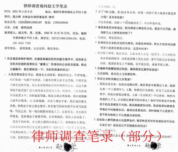 二审判决宣判后,谢显林仍然不服,向长春中院提出申诉。在此期间,辩护人找到判决书认定的陈耀武、崔朋成、孙玉杰、赵文学、董桂森等几个被害人,调查询问的同时还做了同步录音、录像。令人感到震惊的是,这几个被害人均称:没有听到谢显林说过“不交钱就抠坟”那样的话,也没有人主动到公安机关报案,有的是黑林镇派出所把他们找去的,有的警察主动上门找他们的,而且警察在纸上写的是什么也不让看,就让签字!然而,长春中院却再次做出令人震惊的动作,于2021年7月20日,将谢显林的申诉驳回。