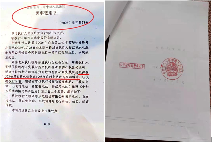 基本案情是,2004年,在农业银行临江市支行诉临江水电公司“抵押贷款纠纷案”中,林玉仁本是案外人。但是,随着白山中院“(2004)白山民二初字第76号”《民事判决书》和“(2005)白山执字第28号”《民事裁定书》的相继出台,林玉仁的合法权益受到严重侵害,同一座水电站早在5年前就被非法“拍卖”,事实上构成了“一女二嫁”,林玉仁成为利害关系人,并由此引发持续11年的信访,且至今还被白山市各级司法机关推诿扯皮。