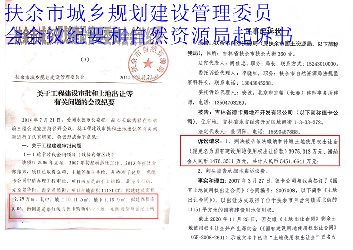 如果说扶余市政府起诉德卡公司是倒打一耙的无理之诉的话,那么,扶余市自然资源局的起诉就更加意味深长了。