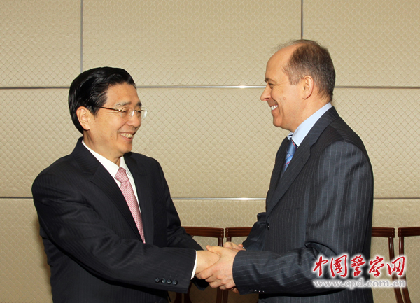 图为国务委员郭声琨与俄罗斯联邦安全总局局长博尔特尼科夫举行会谈。人民公安报中国警察网记者 张建鑫 摄