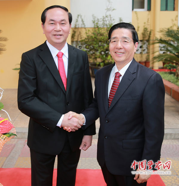 中国警察网河内4月17日电 记者周栋梁报道:正在越南访问的国务委员、公安部部长郭声琨16日在河内与越共中央政治局委员、公安部部长陈大光举行会谈。 郭声琨说,今年是中越建交65周年,中方愿与越方认真落实习近平总书记同阮富仲总书记日前在北京举行会谈时达成的重要共识,加强务实合作,办好建交65周年庆祝活动,共同推动中越全面战略合作伙伴关系持续健康稳定发展。 郭声琨表示,中越执法安全合作是两国关系的重要组成部分。近年来,两国公安部门积极发挥部门间定期会晤机制作用,在禁毒、反拐、打击电信诈骗等领域全面开展了务实良好合作。希望双方在继续巩固传统领域合作势头的基础上,不断创新合作模式,进一步丰富合作内涵、提升合作层次,共同维护两国和地区安全稳定,造福两国人民。 陈大光表示,越方一贯重视越中两党和两国人民的传统友谊和合作,愿不断推动双边关系蓬勃发展。良好的执法安全合作符合两党和两国人民的根本利益,越南公安部愿与中方共同努力,推动两国执法安全合作不断迈上新台阶。 会谈后,郭声琨和陈大光出席了有关合作文件签字仪式。 中国驻越南大使洪小勇、外交部副部长程国平、公安部副部长李伟、国家安全部副部长董海舟参加会谈。 |