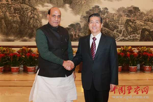 郭声琨表示,中印是世界上两个最大的发展中国家,中印合作关乎地区和世界和平发展。近年来,两国领导人密切往来,就进一步提升中印关系达成重要共识,为双方执法安全合作指明了方向。李克强总理今天与你会见,对两国执法安全合作提出了殷切期望。中国公安部愿与印度内政部携手努力,按照两国领导人的战略规划,建立高级别会晤机制,加强各层级交流,务实推进执法安全合作,不断充实中印战略合作伙伴关系内涵。