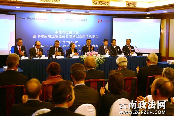 最高人民法院常务副院长沈德咏主持开幕式。国务院法制办公室副主任夏勇,德国联邦最高法院院长林佩阁,德国驻华大使柯慕贤,德国巴登符腾堡州宪法法院院长、罗伯特·博世基金会理事艾伯哈德·斯蒂尔茨,德国国际合作机构驻华首席代表翱鸽致辞。他们对“中德法律合作项目”以及“中德省州法院法官交流项目”所取得的成效予以高度评价,希望两国进一步加大在司法领域的交流与合作,为中德两国建设全方位战略伙伴关系作出积极贡献。