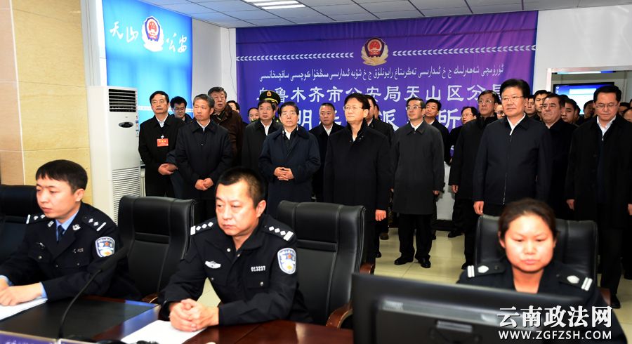 12月11日至12日中共中央政治局委员、中央政法委书记孟建柱近日在新疆乌鲁木齐调研。图为孟建柱在天山区明华街派出所考察 郝帆 摄