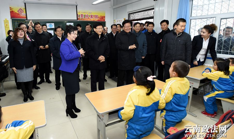 12月11日至12日中共中央政治局委员、中央政法委书记孟建柱近日在新疆乌鲁木齐调研。图为孟建柱在沙依巴客区平顶山社区幼儿学校考察 郝帆 摄