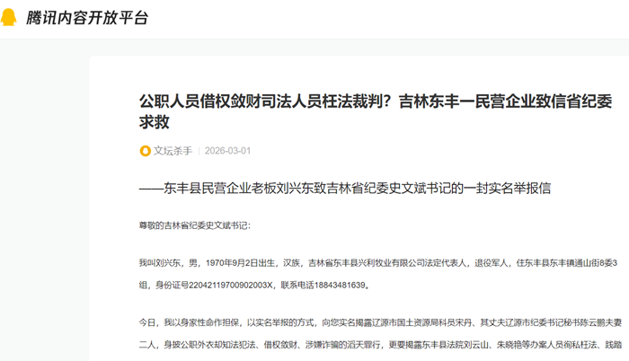 公职人员借权敛财司法人员枉法裁判?吉林东丰一民营企业致信省纪委求救